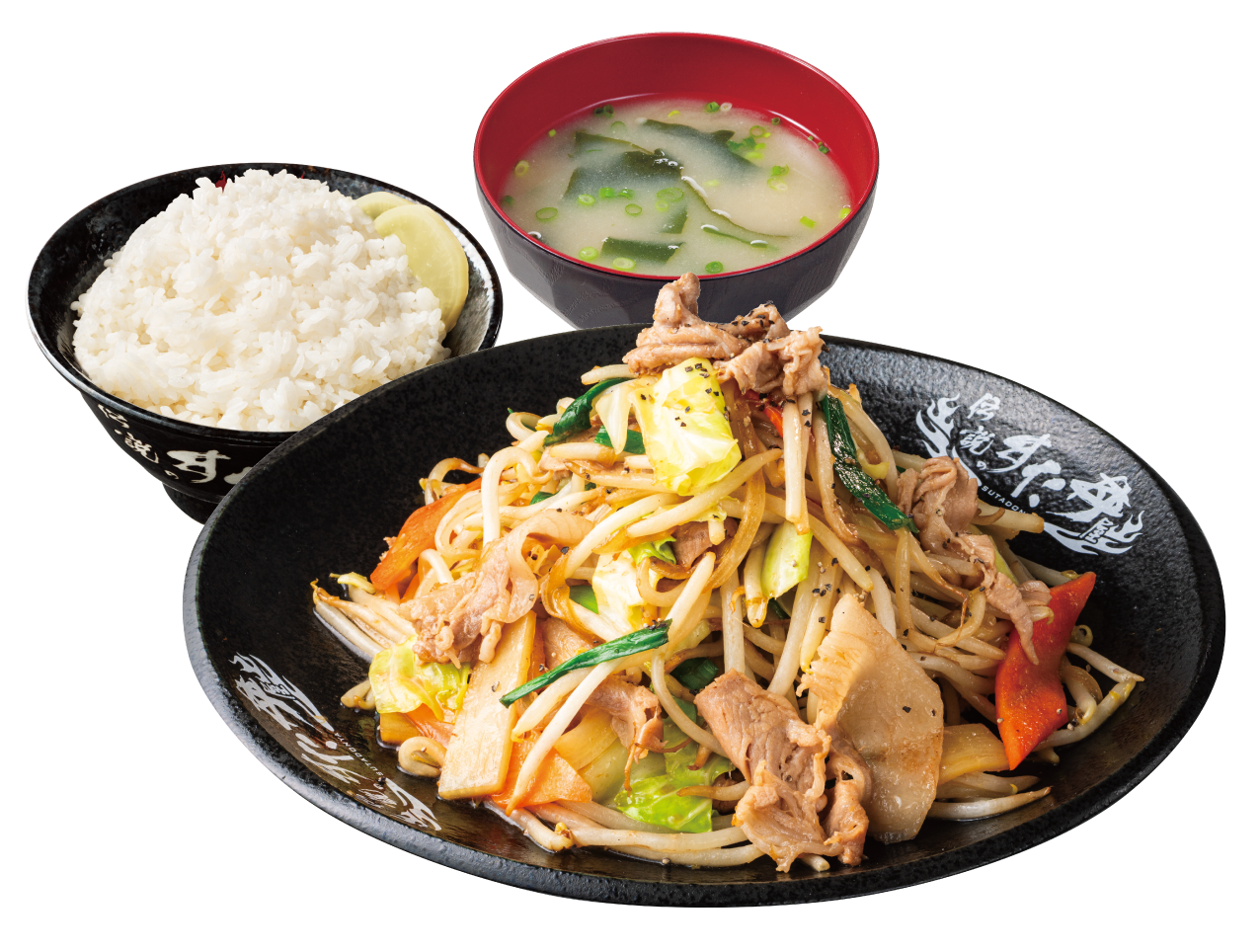 肉量100g・飯量370gへと見直し、野菜とのバランスがとれたボリューム感のある定食に進化。